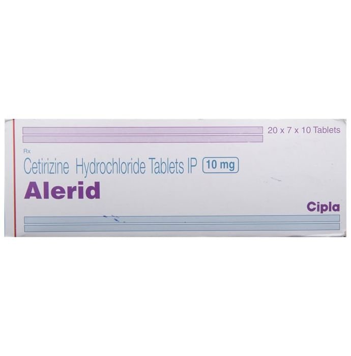 Alerid Tablet belongs to a group of medicines called antihistamines. It is used to treat various allergic conditions such as hay fever, conjunctivitis and some skin reactions, and reactions to bites and stings. It relieves watery eyes, runny nose, sneezing, and itching. Alerid Tablet can be taken with or without food. The dose required for you may vary depending on what you are taking it for. This medicine is usually taken in the evening but follow the advice of your doctor on how to take it. You may need this medicine only on days you have symptoms, but if you are taking it to prevent symptoms you should take it regularly. If you miss doses or stop taking it earlier than advised, your symptoms may come back. This medicine is generally very safe. The most common side effects include feeling sleepy or dizzy. These are usually mild and go away after a couple of days as your body adjusts. Consult your doctor if any of the side effects persist or worry you. You should avoid alcohol while taking this medicine. Before taking it, tell your doctor if you have any kidney problems or epilepsy. Your dose may need to be modified or this medicine may not be suitable. Some other medicines can interact with this medicine so let your healthcare team know what else you are taking. You should also talk to your doctor before using this medicine if you are pregnant or breastfeeding, although it is not thought to be harmful.