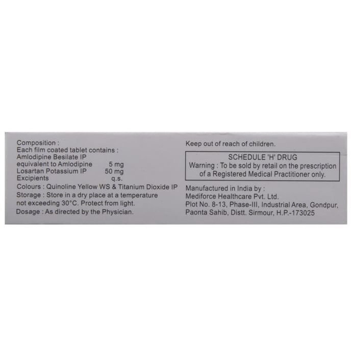 Amlokind-L Tablet is a combination of two medicines: Losartan and Amlodipine which lower blood pressure effectively. Losartan is an angiotensin receptor blocker (ARB) and Amlodipine is a calcium channel blocker (CCB). They work by relaxing the blood vessels and making the heart more efficient at pumping blood throughout the body.