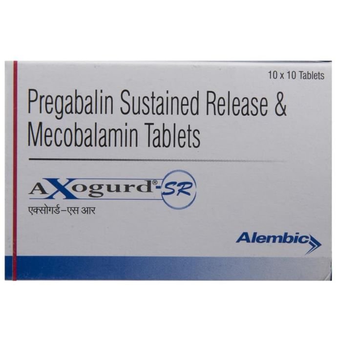 Q. What is Axogurd-SR Tablet?::: Axogurd-SR Tablet is a combination of two medicines: Pregabalin and Methylcobalamin. This medicine is useful in the treatment of nerve pain (neuropathic pain). It calms the damaged or overactive nerves by acting on the brain, thereby decreasing the pain sensation. It also helps in the regeneration of damaged nerves in the body.| Q. Can I stop taking Axogurd-SR Tablet when my pain is relieved?::: No, you should not stop taking Axogurd-SR Tablet even if your pain is relieved. Continue to take it as advised by your doctor. If you suddenly stop taking Axogurd-SR Tablet, you may experience withdrawal symptoms such as anxiety, sleeping difficulties, nausea, pain and sweating. You may need to gradually taper the use of Axogurd-SR Tablet before you stop the medication completely.| Q. How to manage weight gain associated with the use of Axogurd-SR Tablet?::: Axogurd-SR Tablet can make you feel hungry which might make you eat more, thereby increasing your chances of putting on weight. However, preventing weight gain is easier than losing the increased weight. Try to eat a healthy balanced diet without increasing your portion sizes (per-meal intake). Do not eat food items that contain a lot of calories, such as soft drinks, oily food, chips, cakes, biscuits, and sweets. If you feel hungry between meals, avoid eating junk food and eat fruits, vegetables and low-calorie foods. Regular exercise will help prevent weight gain. If you maintain good eating habits and exercise regularly, you might not gain any weight.| Q. Can the use of Axogurd-SR Tablet cause sleepiness or drowsiness?::: Yes, Axogurd-SR Tablet may make you feel drowsy or you may suddenly fall asleep during your daily activities. Sometimes, you might not even feel drowsy or have any other warning signs before you suddenly fall asleep. Avoid driving a car, operating machinery, working at heights or participating in potentially dangerous activities at the beginning of your treatment until you know how the medicine affects you. Inform your doctor if you experience such episodes while you are taking this medicine.| Q. Are there any serious side effects associated with the use of Axogurd-SR Tablet?::: Serious side effects caused because of the use of Axogurd-SR Tablet are uncommon and rare. However, it may cause serious side effects like allergic reaction, suicidal thoughts or swelling of limbs (hands, legs or feet). Stop taking Axogurd-SR Tablet and contact your doctor if you have any signs of these serious side effects. Signs of an allergic reaction include swelling of your face, mouth, lips, gums, tongue and neck. Allergic reactions can also lead to trouble in breathing, skin rash, hives (raised bumps) or blisters. Pay attention to any changes, especially sudden changes in mood, behaviors, thoughts or feelings, or if you have suicidal thoughts.| Q. How long will the Axogurd-SR Tablet take to act?::: An initial benefit with Axogurd-SR Tablet may be seen after 2 weeks of treatment. However, it may take around 2-3 months or more (in some patients) to see the full benefits.| Q. What if I forget to take Axogurd-SR Tablet?::: If you forget to take the scheduled dose of Axogurd-SR Tablet and it is almost time for your next dose, skip the dose you missed and take your next dose at the scheduled time. Otherwise, take it as soon as you remember, and then go back to taking your medicine as you would normally. Do not take a double dose to make up for the dose you missed because this may increase the risk of unwanted side effects. If you are not sure what to do, consult your doctor about how to manage a situation like this.| Q. Will a higher than the recommended dose of Axogurd-SR Tablet be more effective?::: No, taking a higher than the recommended dose may not be more effective, rather it may increase the chances of having some serious side effects and toxicity. If you experience increased severity of your symptoms that are not relieved by the recommended doses, please consult your doctor for re-evaluation.| Q. Can I drink alcohol while taking Axogurd-SR Tablet?::: No, do not drink alcohol while taking Axogurd-SR Tablet. Drinking alcohol can increase the severity of drowsiness or sleepiness caused by Axogurd-SR Tablet.| Q. How often should I see the doctor ?::: You may need to see your doctor regularly if you have started to take Axogurd-SR Tablet. However, you must consult your doctor if the advised dosage of Axogurd-SR Tablet does not improve your symptoms or you continue experiencing some unwanted side effects that affect your routine activities.| Q. Are there any special instructions regarding storage and disposal of this medicine?::: Keep your tablets in the pack until it is time to take them. Store them in a cool dry place. Store them out of sight and reach of children. Unused medications should be disposed of in special ways to ensure that pets, children and other people cannot consume them.