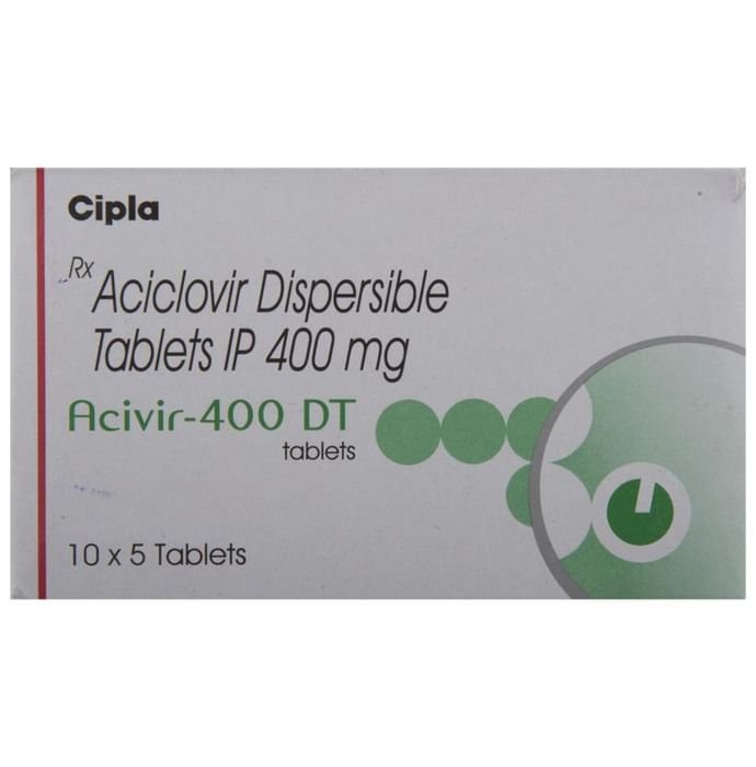 Acivir 400 DT Tablet is an antiviral medicine. It helps in treating viral infections like herpes labialis, herpes simplex, shingles, genital herpes infection, and chickenpox. It prevents the multiplication of virus in human cells and therefore helps in clearing the infection. Acivir 400 DT Tablet should be taken in the dose and duration as advised by your doctor. Do not skip any doses and finish the full course of treatment even if you feel better. Dissolve it in a glass of water before taking it. It may be taken with or without food, but it is better to take it at a fixed time. If you miss a dose, take it as soon as possible. However, if it is almost time for your next dose, skip the missed dose and go back to your regular schedule. Do not double the dose. You should drink plenty of water while on treatment with this medicine as it helps to prevent dehydration and kidney damage. Some side effects of this medicine include headache, dizziness, vomiting, nausea, fatigue, and fever. Inform your doctor if these side effects do not resolve or persist for a longer duration. Please consult your doctor if you are pregnant, planning to conceive or breastfeeding.