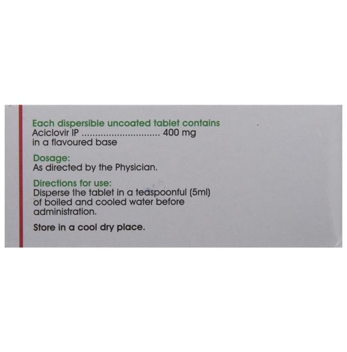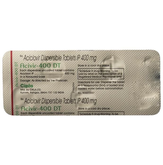 Take this medicine in the dose and duration as advised by your doctor. Dissolve it in a glass of water before taking it. Acivir 400 DT Tablet may be taken with or without food, but it is better to take it at a fixed time.