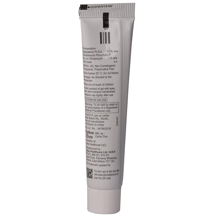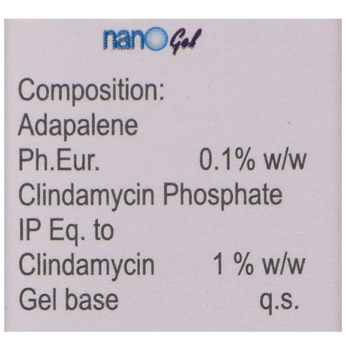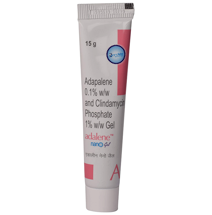 Adalene Nanogel Gel is a combination of two medicines: Adapalene and Clindamycin, which treats pimples (acne). Adapalene is a form of vitamin A which prevents accumulation of the sebum (skin?s natural oil), unblocks the pores and allows natural exfoliation of the outer layers of skin. Clindamycin is an antibiotic which works by penetrating into the skin and killing acne-causing bacteria.