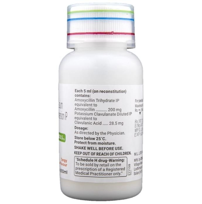 Q. Can other medicines be given at the same time as Advent 228.5mg Dry Syrup?::: Advent 228.5mg Dry Syrup can sometimes interact with other medicines or substances. Tell your doctor about any other medicines your child is taking before starting Advent 228.5mg Dry Syrup. Also, check with your child?s doctor before giving any medicine to your child.| Q. Can I get my child vaccinated while on treatment with Advent 228.5mg Dry Syrup?::: Antibiotics usually do not interfere with the ingredients in vaccines or cause a bad reaction in a child who has just been vaccinated. However, children taking antibiotics should not get vaccinated until they recover from the illness. As soon as your child feels better, the vaccine can be given.| Q. Which lab tests may my child undergo while taking Advent 228.5mg Dry Syrup on a long-term basis?::: With prolonged therapy, the doctor may monitor kidney and liver function tests periodically to keep a check on your child?s condition.| Q. Can I give a higher than the recommended dose of Advent 228.5mg Dry Syrup to my child?::: No, giving a higher than recommended dose of this medicine can increase the risks of side effects. If your child experiences increased severity of symptoms, please consult your doctor for re-evaluation.| Q. Can I stop giving Advent 228.5mg Dry Syrup to my child when the symptoms are relieved?::: No, do not stop giving this medicine to your child unless the full course of the treatment is complete, even if you feel better. The symptoms may improve before the infection is completely cured. Hence, continue giving the medicine for the due course as it may still be showing beneficial effects.| Q. Can the use of Advent 228.5mg Dry Syrup cause diarrhea?::: Yes, Advent 228.5mg Dry Syrup may cause diarrhea. It is an antibiotic that kills harmful bacteria. In addition to that, the medicine may also affect the helpful bacteria in your child?s stomach and cause diarrhea. In case of diarrhea, encourage your child to drink plenty of water or other fluids. Talk to your doctor if diarrhea persists and you notice any signs of dehydration, like less frequency of urination with dark colored and strong-smelling urine. Do not give any other medicine to your child without consulting a doctor.| Q. Do all viral common colds result in secondary bacterial infection?::: Most of the time, bacterial infections do not follow viral infections. In fact, giving antibiotics in viral infection can increase your child?s risk of developing side effects. So, use antibiotics only after consulting with your child?s doctor.| Q. The mucus coming out of my child?s nose is yellow-green. Is it a sign of a bacterial infection?::: Yellow or green mucus in the nose does not mean that antibiotics are needed. During a common cold, it is normal for mucus to thicken up and change from clear to yellow or green. Symptoms often last for 7-10 days.| Q. Is there any sign which shows that my child needs immediate medical attention?::: You must call your child?s doctor right away if your child experiences serious allergic reactions (breathing problems, skin rashes), gastrointestinal infections (diarrhea), and liver damage (weakness, paleness, vomiting). Though rare, these side effects are serious and need an expert?s attention.