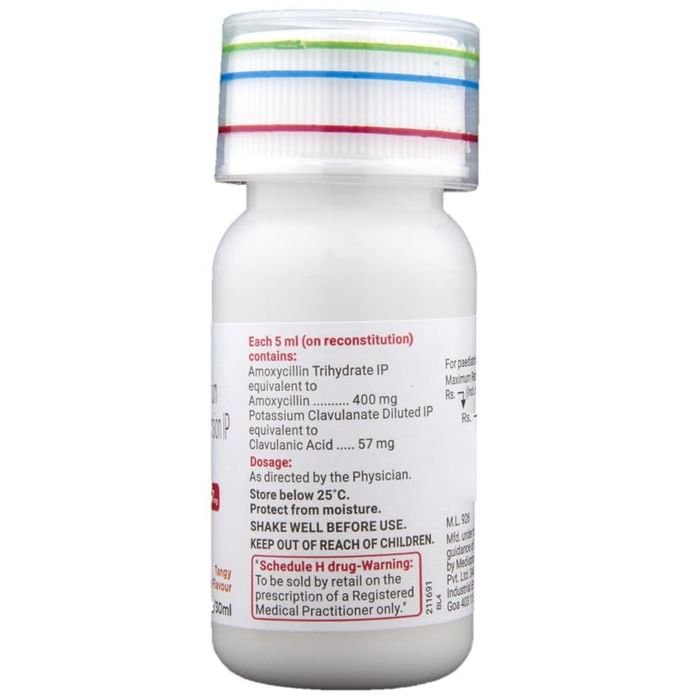 Q. Can other medicines be given at the same time as Advent Forte 457mg Syrup Tangy Orange?::: Advent Forte 457mg Syrup Tangy Orange can sometimes interact with other medicines or substances. Tell your doctor about any other medicines your child is taking before starting Advent Forte 457mg Syrup Tangy Orange. Also, check with your child?s doctor before giving any medicine to your child.| Q. Can I get my child vaccinated while on treatment with Advent Forte 457mg Syrup Tangy Orange?::: Antibiotics usually do not interfere with the ingredients in vaccines or cause a bad reaction in a child who has just been vaccinated. However, children taking antibiotics should not get vaccinated until they recover from the illness. As soon as your child feels better, the vaccine can be given.| Q. Which lab tests may my child undergo while taking Advent Forte 457mg Syrup Tangy Orange on a long-term basis?::: With prolonged therapy, the doctor may monitor kidney and liver function tests periodically to keep a check on your child?s condition.| Q. Can I give a higher than the recommended dose of Advent Forte 457mg Syrup Tangy Orange to my child?::: No, giving a higher than recommended dose of this medicine can increase the risks of side effects. If your child experiences increased severity of symptoms, please consult your doctor for re-evaluation.| Q. Can I stop giving Advent Forte 457mg Syrup Tangy Orange to my child when the symptoms are relieved?::: No, do not stop giving this medicine to your child unless the full course of the treatment is complete, even if you feel better. The symptoms may improve before the infection is completely cured. Hence, continue giving the medicine for the due course as it may still be showing beneficial effects.| Q. Can the use of Advent Forte 457mg Syrup Tangy Orange cause diarrhea?::: Yes, Advent Forte 457mg Syrup Tangy Orange may cause diarrhea. It is an antibiotic that kills harmful bacteria. In addition to that, the medicine may also affect the helpful bacteria in your child?s stomach and cause diarrhea. In case of diarrhea, encourage your child to drink plenty of water or other fluids. Talk to your doctor if diarrhea persists and you notice any signs of dehydration, like less frequency of urination with dark colored and strong-smelling urine. Do not give any other medicine to your child without consulting a doctor.| Q. Do all viral common colds result in secondary bacterial infection?::: Most of the time, bacterial infections do not follow viral infections. In fact, giving antibiotics in viral infection can increase your child?s risk of developing side effects. So, use antibiotics only after consulting with your child?s doctor.| Q. The mucus coming out of my child?s nose is yellow-green. Is it a sign of a bacterial infection?::: Yellow or green mucus in the nose does not mean that antibiotics are needed. During a common cold, it is normal for mucus to thicken up and change from clear to yellow or green. Symptoms often last for 7-10 days.| Q. Is there any sign which shows that my child needs immediate medical attention?::: You must call your child?s doctor right away if your child experiences serious allergic reactions (breathing problems, skin rashes), gastrointestinal infections (diarrhea), and liver damage (weakness, paleness, vomiting). Though rare, these side effects are serious and need an expert?s attention.