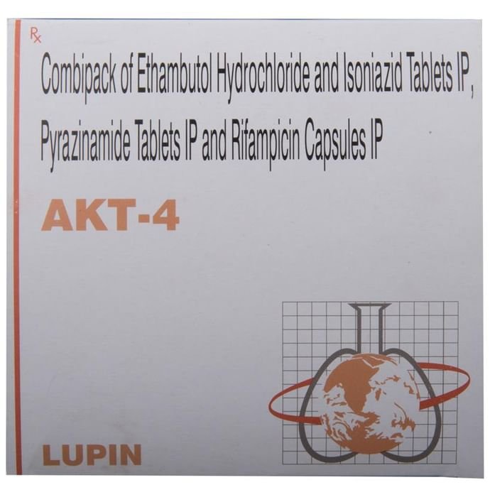 Akt 4 Kit is a combination medicine used in the treatment of tuberculosis. It prevents the growth of the microorganisms that cause the infection. Akt 4 Kit is a prescription medicine and it is to be taken it as suggested by the doctor. It should be taken in an empty stomach and take it at a fixed time to ensure better efficacy. Do not consume more than the recommended dose, as this may have harmful effects on your body. If you miss a dose, take it as soon as you remember. The course of the treatment must be completed even if you feel better. Sudden discontinuation of the treatment may affect the potency of the medicine. The medicine may take some to show its effects on the symptoms. However, it is advised to consult the doctor if you feel an aggravation of the condition or if your condition does not improve. Some common side effects of this medicine are nausea, vomiting, fever, dark-colored urine, sweating, increased saliva, etc. To cope up with the side effects, you should drink plenty of water. If any of the side effects get aggravated, you must consult your doctor immediately. Generally, serious side effects are rare. If you experience any allergic reaction (rashes, itching, swelling, shortness of breath, etc.), you must seek immediate medical help. Before taking this medicine, you should tell your doctor if you are taking any medicines for any health condition. Patients with liver and kidney ailments must take this medicine with proper consultation and caution. Pregnant or breastfeeding women should also consult with the doctor before taking it. Avoid drinking alcohol as it can cause excessive drowsiness with this medicine. It usually does not impair your ability to drive, but you should not drive if it makes you feel sleepy or dizzy. During the treatment, you must take adequate rest and eat a healthy diet for a faster recovery. While on the medication, your doctor may ask for a few laboratory and diagnostic tests to know the effects of the medicine on your body.