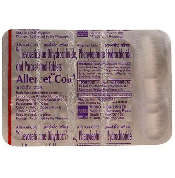 Allercet Cold Tablet is an antihistaminic medication. It treats allergy symptoms such as itching, swelling, and rashes by blocking the effects of a chemical messenger (histamine) in the body.