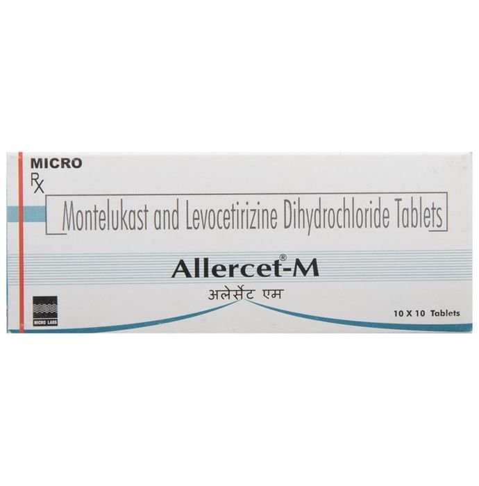 Q. What is Allercet-M Tablet?::: Allercet-M Tablet is a combination of two medicines: Montelukast and Levocetirizine. Levocetirizine is an antiallergic which helps to relieve allergy symptoms like runny nose, sneezing, watery eyes and cough. It works by lowering chemicals in the body that cause allergy symptoms. Montelukast works by blocking another chemical messenger (leukotriene) and reduces inflammation (swelling) in the airways and nose. This further helps to relieve the symptoms.| Q. Can the use of Allercet-M Tablet cause drowsiness or sleepiness?::: Yes, the most common side effect of Allercet-M Tablet is sleepiness. Do not drive, operate heavy machinery or engage in other activities that need your full attention unless your doctor says that you may do so. Do not drink alcohol or take other central nervous system depressants, such as cough and cold medicines. Also avoid taking certain pain relief medicines and medicines that help you sleep as they can lead to severe drowsiness or can worsen it, causing falls or accidents.| Q. Can Allercet-M Tablet be stopped when allergy symptoms are relieved?::: No, Allercet-M Tablet should be continued as advised by the doctor. If you experience any side effects of this medicine or the symptoms of allergy are worsened, consult the doctor for re-evaluation.| Q. Can the use of Allercet-M Tablet cause dry mouth?::: Yes, the use of Allercet-M Tablet can cause dry mouth. If you experience dry mouth, drink plenty of water. Take regular sips during the day and keep some water by your bed at night. You may use lip balm if your lips are also dry.| Q. Can I drink alcohol while taking Allercet-M Tablet?::: No, do not take alcohol while taking Allercet-M Tablet. Drinking alcohol will increase the severity of drowsiness/sleepiness caused by Allercet-M Tablet.| Q. Will Allercet-M Tablet be more effective if taken in higher doses?::: No, taking a higher dose of this medicine than recommended will not make it more effective. Consuming higher than the recommended dose of Allercet-M Tablet can cause increased side effects. If the symptoms are getting severe, please consult the doctor for re-evaluation.| Q. What are the instructions for storage and disposal of Allercet-M Tablet?::: Keep this medicine in the container or the pack it came in, tightly closed. Store it according to the instructions mentioned on the pack or label. Dispose of the unused medicine. Make sure it is not consumed by pets, children, and other people.