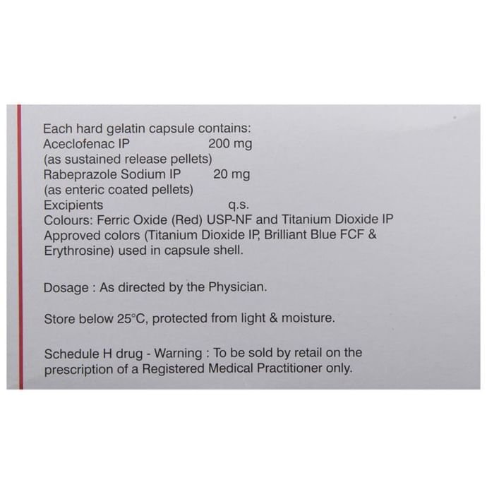 Altraday Capsule SR is a combination of two medicines: Aceclofenac and Rabeprazole, which relieves pain. Aceclofenac is a non-steroidal anti-inflammatory drug (NSAID) which works by blocking the release of certain chemical messengers that cause pain and inflammation (redness and swelling). Rabeprazole is a proton-pump inhibitor which prevents damage to the stomach lining caused by Aceclofenac.
