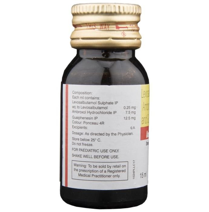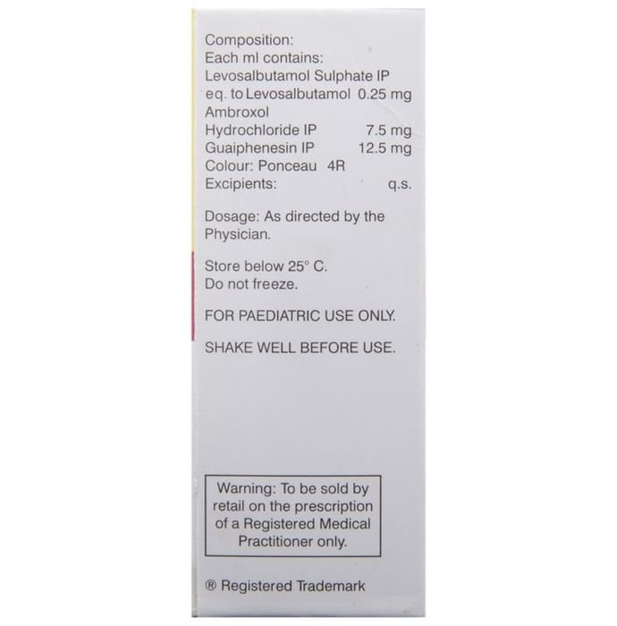Q. Can I give Ambrodil-LX Drop to my child who is less than 6 years of age?::: Yes, Ambrodil-LX Drop is suitable to be given to the child who is between 2 to 6 years of age. Your child?s doctor may prescribe the dose depending upon your child?s body weight.| Q. What if my child takes too much Ambrodil-LX Drop?::: An overdose or a prolonged intake of Ambrodil-LX Drop may cause serious side effects like seizures, rapid heart rate, excess salivation. Make sure to give this medicine to your child strictly as per the prescribed dose, time, and way. You must also ensure not to stop the medicine abruptly even if your child starts to feel better. Sudden withdrawal of this medicine may worsen your child?s condition.| Q. How should Ambrodil-LX Drop be stored?::: Ambrodil-LX Drop should be stored at room temperature, in a dry place, away from direct heat and light. Also, keep all medicines out of the reach and sight of children to avoid any mishap.| Q. My child has a severe cough. Can I give him two cough medicines together?::: Do not give your child more than one cough or cold medicine at a time unless advised by your child?s doctor. In case of confusion, always consult your child?s doctor before giving any medicine to your child.| Q. Can I give my cough medicine to my child?::: Never give your child the medicines that have been recommended for use by adults. Children should only be given the medicines that have been formulated for them, else it may cause unwanted side effects. Check the label of the medicine properly before giving it to your child. Follow the prescribed dose strictly.| Q. My child is having a cough with no mucus. Can I give Ambrodil-LX Drop to him?::: No, Ambrodil-LX Drop is advised for the treatment of wet cough. It aims to expel the mucus from the airway tract, thereby relieving your child from throat irritation, congestion and rendering him a soothing effect. Whereas, for a dry cough, cough suppressants are a better option. So, it will be wise if you ask your child?s doctor before giving any medicine to your child.