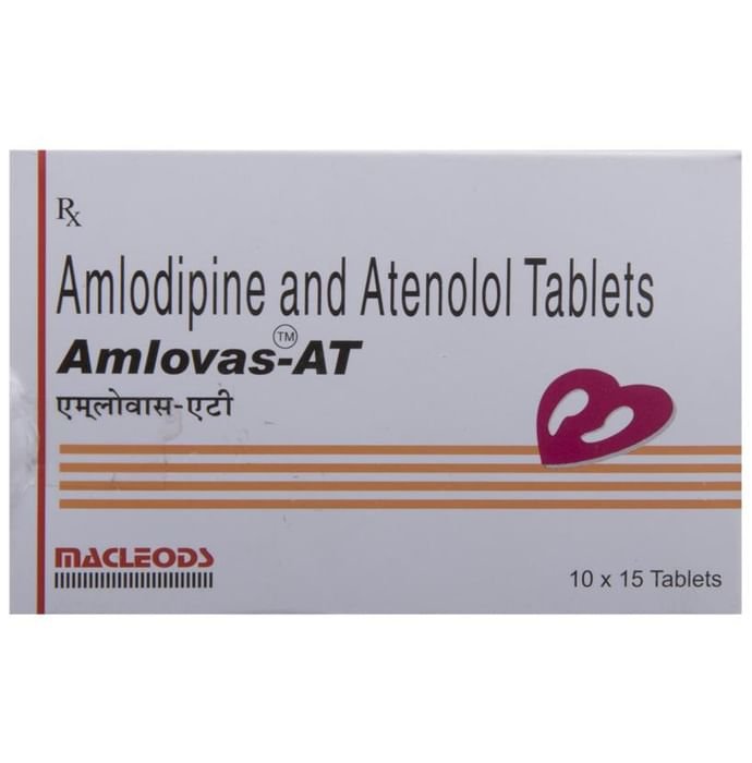 Amlovas-AT Tablet is a combination of two medicines: Amlodipine and Atenolol, which lowers blood pressure effectively. Amlodipine is a calcium channel blocker which works by relaxing blood vessels while atenolol is a beta blocker which works specifically on the heart to slow down the heart rate. Together, they make the heart more efficient at pumping blood throughout the body.