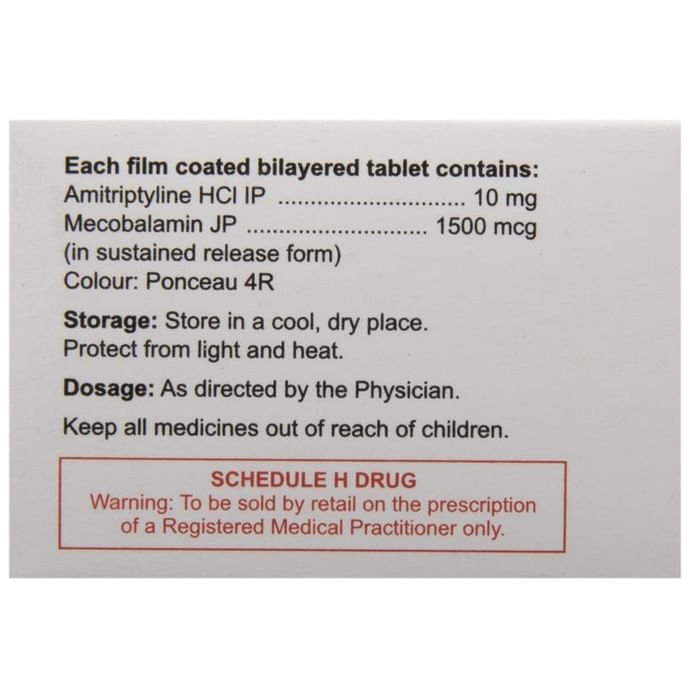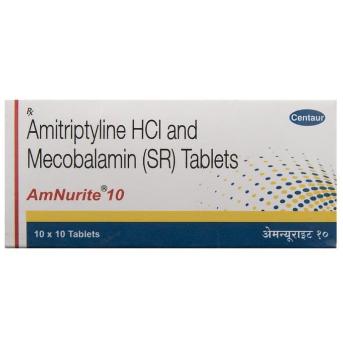 Amnurite 10 Tablet SR is a combination of two medicines: Amitriptyline and methylcobalamin. Amitriptyline is a tricyclic antidepressant which increases the levels of chemical messengers (serotonin and noradrenaline) that stop the movement of pain signals in the brain. Methylcobalamin is a form of vitamin B which helps in the production of myelin, a substance that protects nerve fibres and rejuvenates damaged nerve cells. Together, they relieve neuropathic pain (pain from damaged nerves).