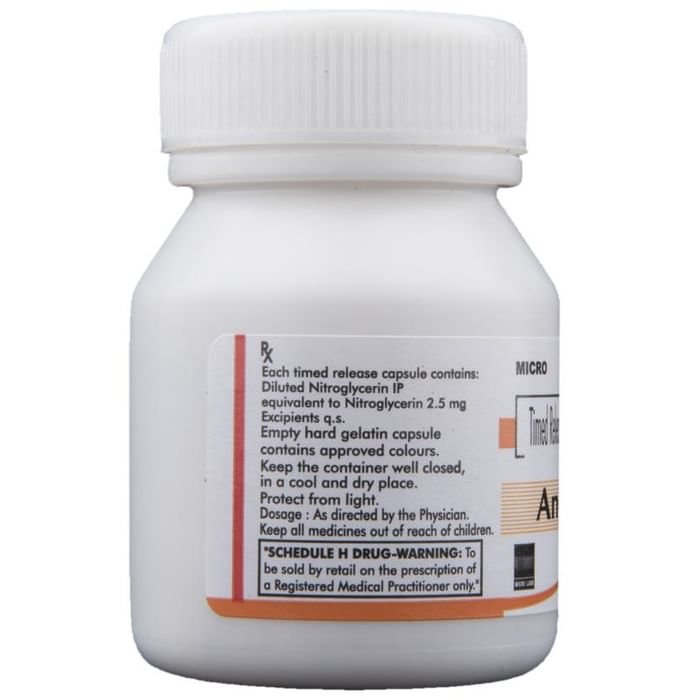 Q. Can I take sildenafil if I am taking Angiplat 2.5 Capsule TR?::: No, you should not take sildenafil if you are taking Angiplat 2.5 Capsule TR. Taking these two medicines together can cause an excessive fall in blood pressure, which may even be life-threatening.| Q. What effect does Angiplat 2.5 Capsule TR have on blood pressure?::: Angiplat 2.5 Capsule TR decreases the blood pressure by relaxing the blood vessels, but is not recommended for the treatment of high blood pressure. The drop in blood pressure may cause lightheadedness, especially when changing your position suddenly.| Q. Does the effect of Angiplat 2.5 Capsule TR wear off after some time?::: Yes, excessive use of Angiplat 2.5 Capsule TR may cause tolerance which means that Angiplat 2.5 Capsule TR may lose its effectiveness on you. Therefore, usually the doctors prescribe the smallest dose required for effective relief of acute angina attack. This helps maintain the effectiveness of Angiplat 2.5 Capsule TR.| Q. What does too much Angiplat 2.5 Capsule TR do?::: Excess Angiplat 2.5 Capsule TR may result in low blood pressure, sweating, nausea, vomiting, headache, weak and fast pulse. It may also cause weakness, lightheadedness on standing and the patient might even faint. The patient will require emergency medical treatment in such a case.| Q. Can I stop using Angiplat 2.5 Capsule TR as I feel better now?::: Stopping Angiplat 2.5 Capsule TR suddenly may bring on attacks of angina, especially if you have been using it for several weeks or more. Talk to your doctor who will advise you to reduce the dose gradually over 4 to 6 weeks before you stop using it completely.| Q. Does Angiplat 2.5 Capsule TR stop heart attacks?::: Angiplat 2.5 Capsule TR is prescribed to prevent attacks of heart-related chest pain (angina) in patients with coronary artery disease. In this disease the blood vessels (coronary arteries) which supply blood to the heart become narrowed because of which the heart has to work harder to get enough oxygen. Angiplat 2.5 Capsule TR prevents angina by relaxing the blood vessels so that the heart does not have to work very hard. Also, relaxation of coronary arteries increases the oxygen supply to the heart.