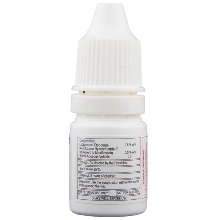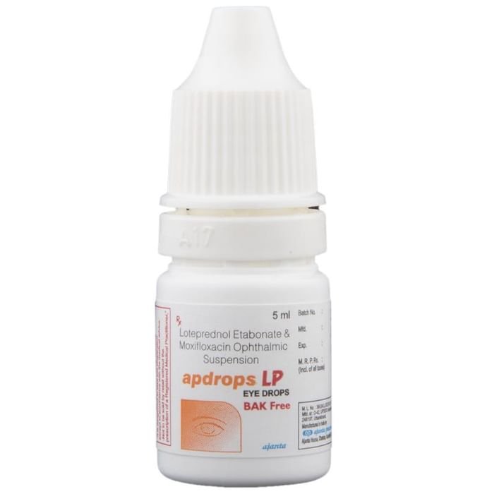 Apdrops LP Eye Drop BAK Free is a combination of two medicines: Loteprednol etabonate and Moxifloxacin. Loteprednol etabonate is a steroid which blocks the production of certain chemical messengers (prostaglandins) that make the eye red, swollen and itchy. Moxifloxacin is an antibiotic which prevents bacterial cells from dividing and repairing, thereby killing the bacteria. This treats your eye infection and inflammation.