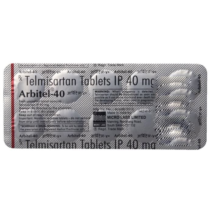 Arbitel 40 Tablet is an angiotensin receptor blocker (ARB). It relaxes blood vessels by blocking the action of a chemical that usually makes blood vessels tighter. This lowers the blood pressure, allowing the blood to flow more smoothly to different organs and the heart to pump more efficiently.