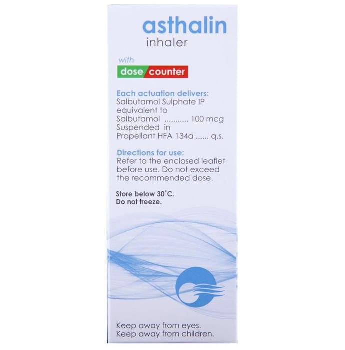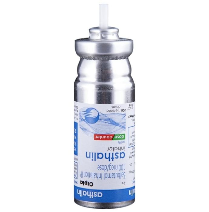 Asthalin 100mcg Inhaler belongs to a group of medicines called fast-acting bronchodilators or ?relievers?. It?s used to treat the symptoms of asthma and chronic obstructive pulmonary diseases (COPD) such as coughing, wheezing, and breathlessness. Asthalin 100mcg Inhaler is called "reliever" inhalers because they give you quick relief from breathing problems when you need it. In most cases, you will be given another inhaler to prevent your symptoms (a ?preventer?) and you should use this regularly every day. Asthalin 100mcg Inhaler works quickly and the effects can last several hours. You can use it at any time of day, but only use it when you notice symptoms, such as coughing, wheezing, shortness of breath, tightness in the chest or you know that you are going to do an activity that can cause breathlessness. When an asthma attack happens, you should take the number of puffs your doctor recommends. There are several types of inhaler devices so make sure you know how to use your inhaler correctly, otherwise, it may not work. Do not stop using this medicine unless your doctor tells you to. If you stop, your breathing problems could get worse. Asthalin 100mcg Inhaler is generally safe and effective but may cause some common side effects which include tremors, headaches, and tachycardia. These side effects are not often dangerous and should gradually improve as your body gets used to this medicine. There are other rare, side effects and you should call your doctor straight away if you get chest pain, a very bad headache, or very bad dizziness. Before using Asthalin 100mcg Inhaler, you should tell your doctor if you have high blood pressure, an overactive thyroid gland, a history of heart problems, diabetes, or low levels of potassium in your blood to make sure it is safe. Also, make sure your doctor knows if you are pregnant or breast-feeding before taking this medicine. This medicine can make you feel dizzy or shaky, therefore, do not drive, use tools, or machinery until you feel better. Avoid smoking as it causes damage to your lungs and will make your condition worse.