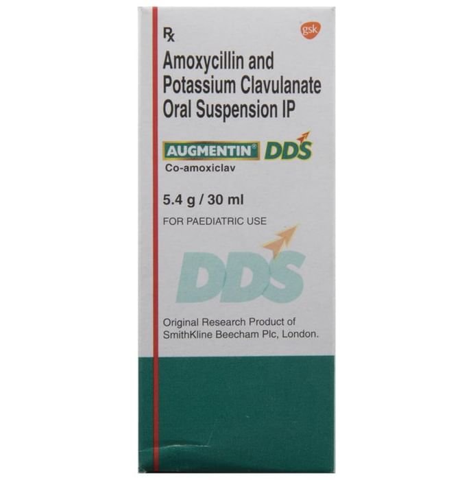 Augmentin DDS Suspension is an antibiotic. It has two active agents, amoxycillin and clavulanic acid. Amoxycillin works by preventing the formation of the bacterial protective covering (cell wall) essential for the survival of the bacteria. Whereas, clavulanic acid serves a special purpose of inhibiting an enzyme (beta-lactamase) that is produced by resistant bacteria. This makes the combination of amoxycillin and clavulanic acid an effective line of treatment for many types of infections.