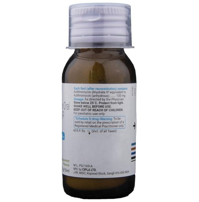Q. What if I give too much of Azee 100mg Dry Syrup Peppermint by mistake?::: Azee 100mg Dry Syrup Peppermint is unlikely to cause any harm if an extra dose is given by mistake. However, if you think you have given too much of Azee 100mg Dry Syrup Peppermint to your child, immediately speak to a doctor. Overdose may cause unwanted side effects and may even worsen your child?s condition.| Q. Are there any possible serious side effects of Azee 100mg Dry Syrup Peppermint?::: Some serious side effects of this medicine include persistent vomiting, kidney damage, allergy, diarrhea, and severe gastrointestinal infections. Always consult your child?s doctor for help in such a situation.| Q. Can other medicines be given at the same time as Azee 100mg Dry Syrup Peppermint?::: Azee 100mg Dry Syrup Peppermint can sometimes interact with other medicines or substances. Tell your doctor about any other medicines your child is taking before starting Azee 100mg Dry Syrup Peppermint. Also, check with your child?s doctor before giving any medicine to your child.| Q. Can I get my child vaccinated while on treatment with Azee 100mg Dry Syrup Peppermint?::: Antibiotics usually do not interfere with the ingredients in vaccines or cause a bad reaction in a child who has just been vaccinated. However, children taking antibiotics should not get vaccinated until they recover from the illness. As soon as your child feels better, the vaccine can be given.| Q. Which all lab tests should my child undergo while taking Azee 100mg Dry Syrup Peppermint on a long term basis?::: The doctor may prescribe getting kidney function tests and liver function tests periodically to keep a check on your child?s condition.| Q. Can Azee 100mg Dry Syrup Peppermint impact my child?s digestion?::: Children often have a sensitive stomach and develop a stomach upset while taking medicines. When antibiotics are given, the good bacteria in their gastrointestinal tract may too get affected. Azee 100mg Dry Syrup Peppermint may kill off good bacteria along with the bad ones, increasing your child?s risk of developing other infections. So, in case your child is having diarrhea while on Azee 100mg Dry Syrup Peppermint, do not stop the medicine course. Instead, call your child?s doctor to ask the next steps. In some cases, the doctor may alter the dose.| Q. Why is Azee 100mg Dry Syrup Peppermint given for 3 days?::: The duration of treatment depends on the type of infection being treated and the age of the patient. Azee 100mg Dry Syrup Peppermint is not necessarily given for 3 days. In most bacterial infections, a single dose of 500 mg is given for 3 days. Alternatively, it can be given as 500 mg once on day 1 and then 250 mg once from day 2 to day 5. In some cases of infection such as genital ulcer disease, it is given as a single 1 gram dose. Therefore, you must stick to the regime advised by your doctor.| Q. What should I avoid while taking Azee 100mg Dry Syrup Peppermint?::: Generally, it is recommended that patients taking Azee 100mg Dry Syrup Peppermint should avoid taking any antacid with this medicine as this can affect the overall effectiveness of Azee 100mg Dry Syrup Peppermint. It is also recommended to avoid exposure to sunlight or tanning beds as Azee 100mg Dry Syrup Peppermint increases the risk of sunburn.| Q. Is Azee 100mg Dry Syrup Peppermint a strong antibiotic?::: Azee 100mg Dry Syrup Peppermint is an effective antibiotic that is used for the treatment of many bacterial infections. Compared to other antibiotics, Azee 100mg Dry Syrup Peppermint has a longer half-life which means that it stays in the body for a long time because of which it is given once a day and for a short span of time. Other antibiotics comparatively have a shorter half-life and are usually given twice, thrice, or four times a day.| Q. Can you get a yeast infection from taking Azee 100mg Dry Syrup Peppermint?::: Some people may get a fungal or yeast infection known as thrush after taking Azee 100mg Dry Syrup Peppermint. Antibiotics such as Azee 100mg Dry Syrup Peppermint can kill the normal or ?good bacteria? of your intestine responsible for preventing thrush. You should inform your doctor if you get a sore or vaginal itching or discharge. Also, inform your doctor if you get a white patch in the mouth or tongue after taking Azee 100mg Dry Syrup Peppermint or soon after stopping it.