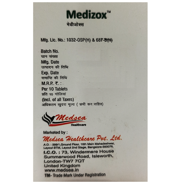 Take this medicine in the dose and duration as advised by your doctor. Swallow it as a whole. Do not chew, crush or break it. Medizox Tablet is to be taken with food.
